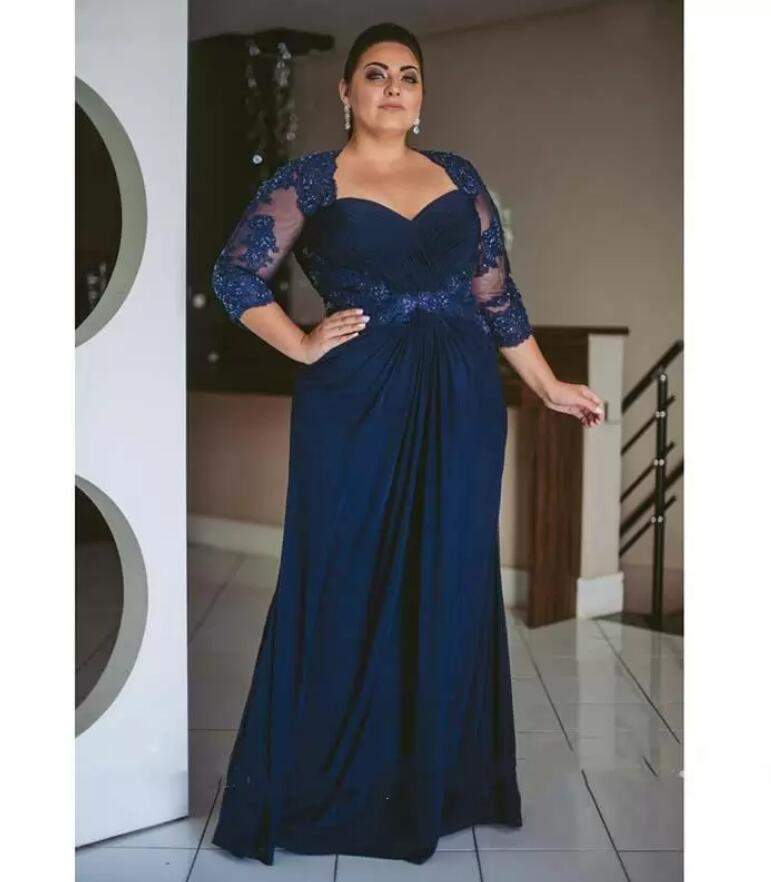 Plus Size Mother of the Bride Dresses for Wedding Party Dark Navy Blue Lace Beads Chiffon Column Floor Length Women Formal Evening Gowns Custom Made