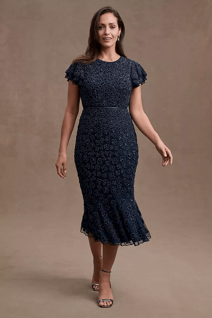 Navy Blue Tea-length Lace Mother of Bride/Groom Dress