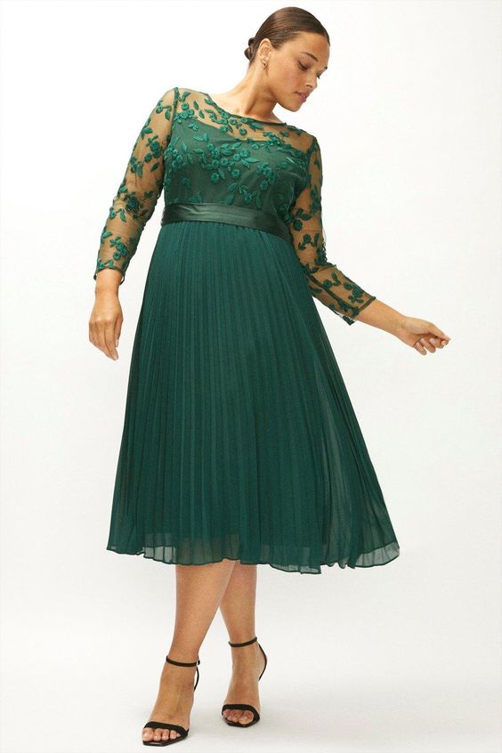 Eleghant Sheath Green Plus SizeTea-length Mother of Bride/Groom Dress